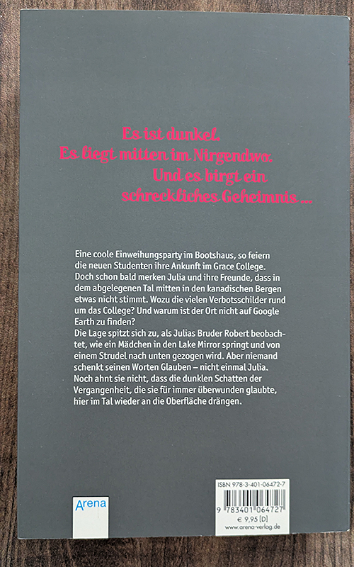 'Dieser Ort ist böse': Julia und ihr Bruder Robert reisen von Berlin nach Kanada zum Eliteinternat Grace, einem völlig abgeschotteten Ort, wo auch der Handykontakt nach aussen nicht mehr funktioniert. Schon in der ersten Nacht wird Robert von Alpträumen heimgesucht und Julia von Panik geplagt, denn vieles ist hier nicht wie es scheint und auch die Geschwister bringen eine traumatische Vergangenheit mit. Als die Student/-innen vom Internat beim Bootshaus eine heimliche Party feiern und Robert am See angelt, sieht er plötzlich ein Mädchen vom gegenüber liegenden Felsen springen. Niemand will ihm glauben, auch Julia nicht, denn in ihren Augen ist Robert ein Fantast. Doch nur so lange, bis Angela, ein Mädchen im Rollstuhl, vermisst wird. Wer ist sie und welche Rolle spielt sie im Grace College? Auch wenn Krystyna Kuhn zu Beginn oft die 'Dieser-Ort-ist böse-Taste' drückt, ist dieser Thriller wieder einmal so packend, dass man ihn nicht aus der Hand legen mag, bis er zu Ende gelesen ist. Dieses Buch ist der Auftakt zu weiteren Bänden einer Serie, die bestimmt viele Jugendliche begeistern wird. Ab 12 Jahren, ****, Denise Racine.
