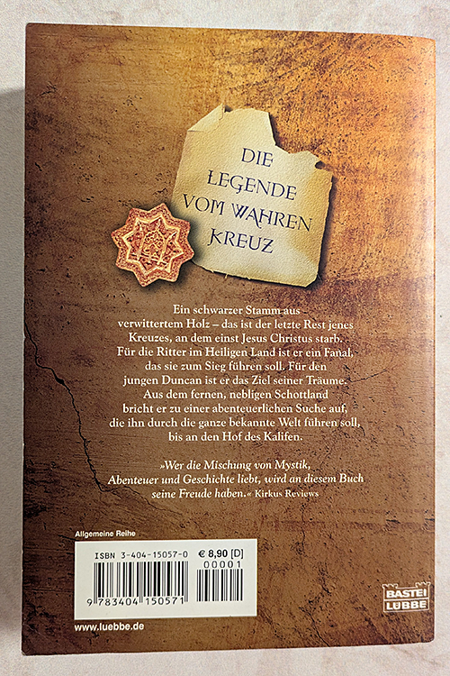 Anno Domini 1132. Ein schwarzer Stamm aus verwittertem Holz - das ist der letzte Rest jenes Kreuzes, an dem einst Jesus Christus starb. Für die Ritter im Heiligen Land ist er ein Fanal, das sie zum Sieg führen soll. Für den jungen Duncan ist er das Ziel seiner Träume. Aus dem fernen, nebligen Schottland bricht er zu einer abenteuerlichen Suche auf, die ihn durch die ganze bekannte Welt führt, bis an den Hof des Kalifen.