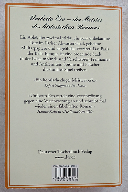 Historischer Roman. Verschwörungsthriller, der im 19. Jahrhundert in Europa spielt und auf realen historischen Ereignissen basiert..