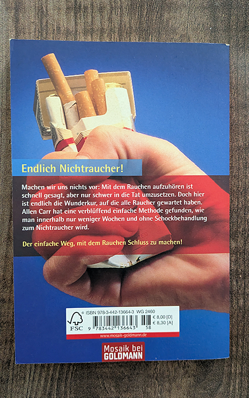 Ratgeber. Ein Programm, um Rauchern zu helfen, dauerhaft mit dem Rauchen aufzuhören.. Rauchfreiheit erreichen und ein gesünderes Leben führen durch die Anwendung der im Buch beschriebenen Methoden.. Keine fiktiven Figuren.