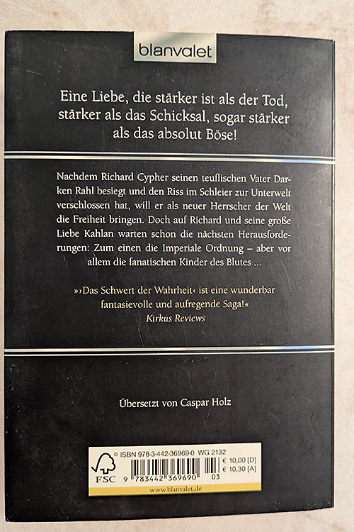 Ein atemberaubendes Epos über Verrat und Ehre, Rache und Liebe! Nachdem Richard Cypher seinen teuflischen Stiefvater Darken Rahl besiegt und den Riss im Schleier zur Unterwelt verschlossen hat, will er als neuer Herrscher der Welt die Freiheit bringen. Doch auf Richard und seine grosse Liebe Kahlan warten schon die nächsten Herausforderungen: Zum einen die Imperiale Ordnung - aber vor allem die fanatischen Kinder des Blutes.