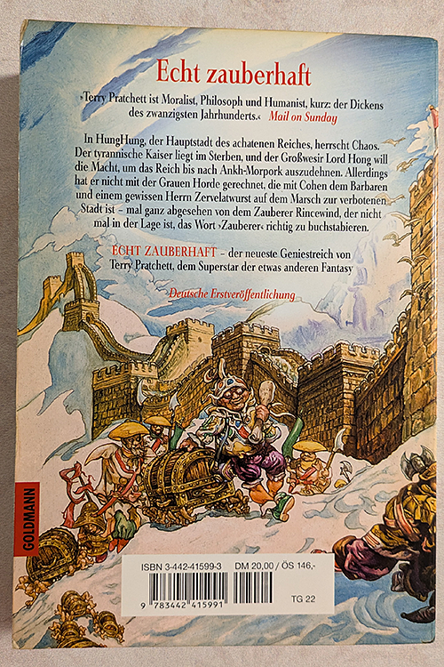 Im Achatenen Reich, in dem 5 adelige Familien schon seit Jahrhunderten gegeneinander kämpften, herrscht Chaos, da der alte Tyrannenkaiser im Sterben liegt. Der machtgierige und grausame Grosswesir Lord Hong lässt ihn kurzerhand ermorden, um selbst den Thron besteigen zu können. Doch er hat die Rechnung ohne Zauberer Rincewind gemacht. Temporeiches, herrlich-skurilles und witziges Lesevergnügen für Fantasyfreunde.