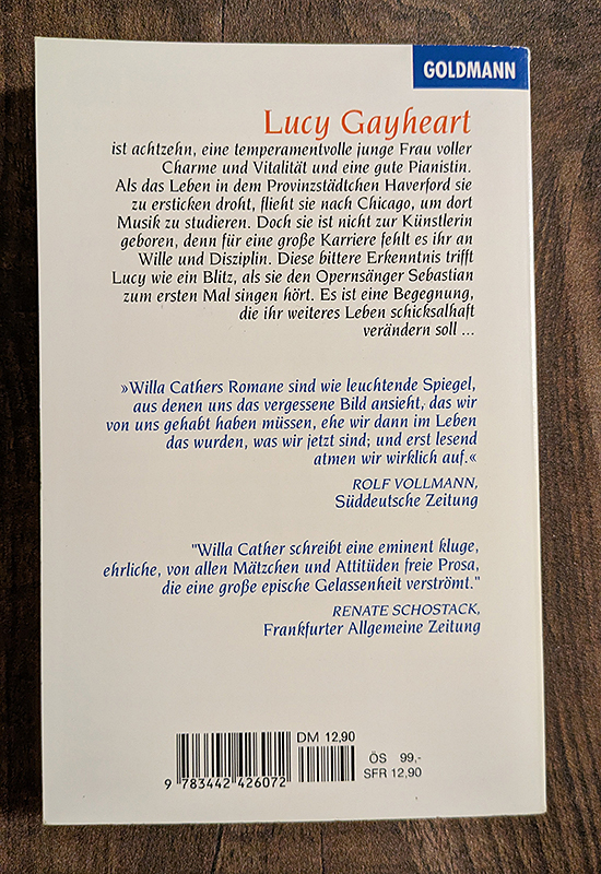 Roman. Eine junge Frau verliebt sich in einen berühmten Pianisten und muss Entscheidungen über ihre Zukunft treffen.. Liebe, Leidenschaft und die Herausforderungen des Erwachsenwerdens.. Lucy Gayheart, berühmter Pianist, genaue Figuren unbekannt.