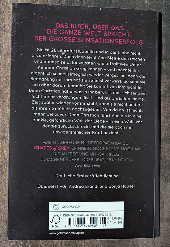 Erotikroman. Liebesgeschichte mit erotischen Elementen. Exploration von Liebe, Verlangen und Macht in einer Beziehung. Anastasia Steele und Christian Grey.