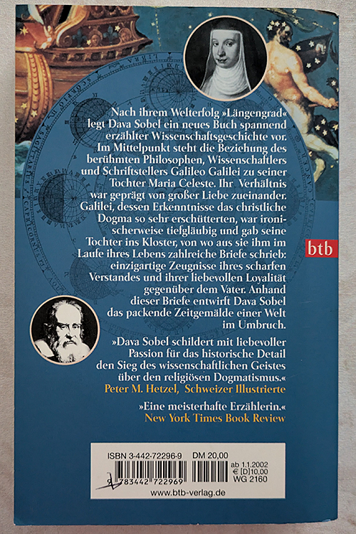 Biografie. Das Buch erzählt die Geschichte von Galileo Galileis Tochter Maria Celeste und ihrer Beziehung zu ihrem berühmten Vater, einem bedeutenden Astronomen und Philosophen..