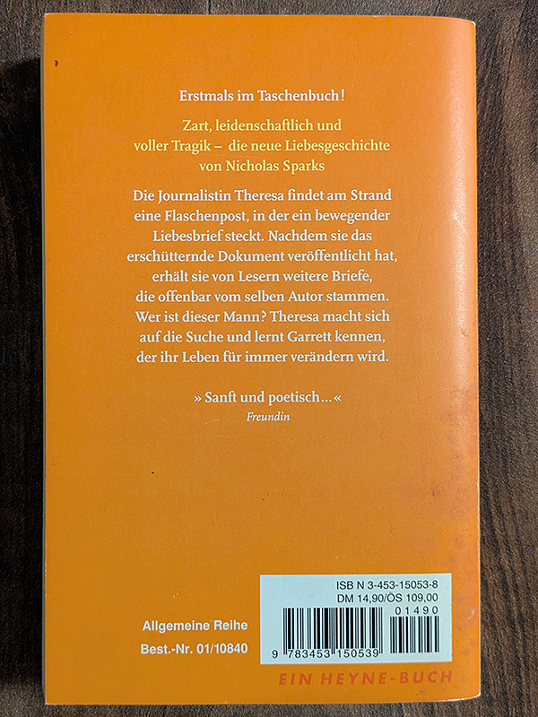 Theresa hat den Glauben an die Liebe verloren, als sie eine Flaschenpost mit einem Liebesbrief findet, den Garret an seine verstorbene Cathrine geschrieben hat. Theresa MUSS ihn aufsuchen, und sie verlieben sich ineinander.