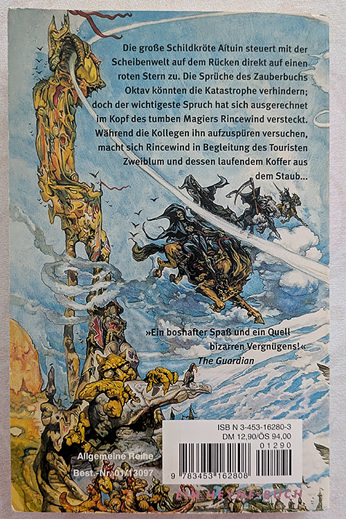 Fantasy, Satire. In 'Das Licht der Phantasie' von Terry Pratchett wird die Geschichte der fliegenden Scheibenwelt und ihrer skurrilen Bewohner erzählt..