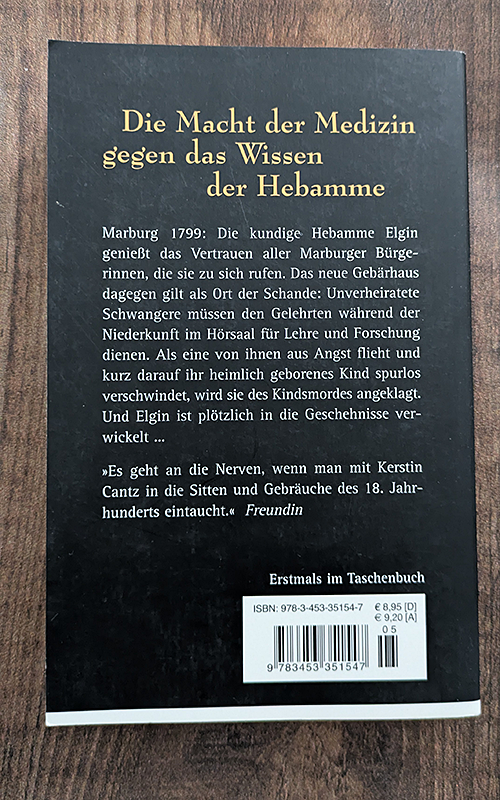 Gesa ist Hebammenschülerin in Marburg. Dort gibt es 1799 eines der wenigen Gebärhäuser, die von Ärzten geleitet, Studenten und Hebammen ausbildet. Doch Gesa orientiert sich eher an der Arbeit der freien Hebamme Engin und ihrem traditionellen Wissen. - Spannender historischer Roman.