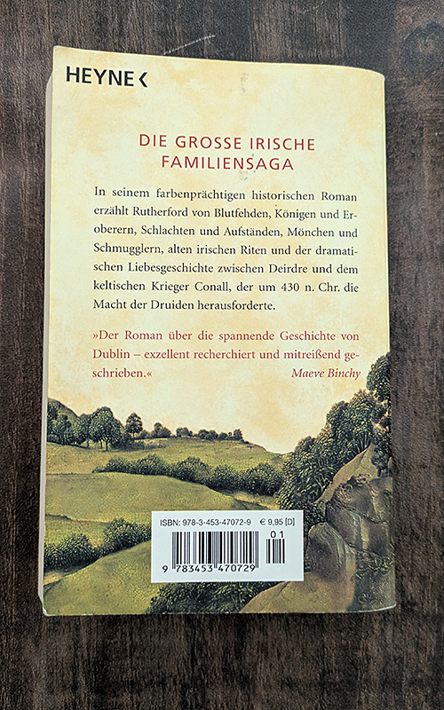 In seinem farbenprächtigen historischen Roman erzählt Rutherford von Blutfehden, Königen und Eroberern, Schlachten und Aufständen, Mönchen und Schmugglern, alten irischen Riten und der dramatischen Liebesgeschichte zwischen Deirdre und dem keltischen Krie