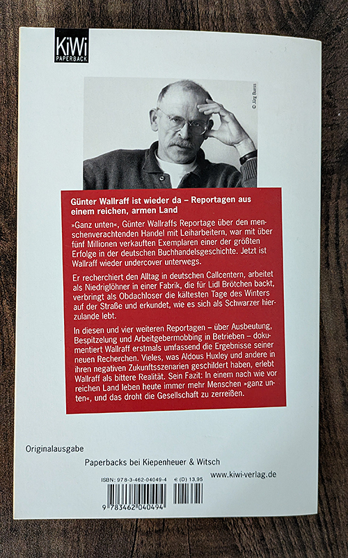 Ganz unten, Günter Wallraffs Reportage über den menschenverachtenden Handel mit Leiharbeitern, war mit über fünf Millionen verkauften Exemplaren einer der größten Erfolge in der deutschen Buchhandelsgeschichte. Jetzt ist Wallraff wieder undercover unterwegs ... Niemand hat mehr Missstände aufgedeckt als er. Millionen haben seine Bücher gelesen, junge Journalisten nehmen sich an ihm ein Vorbild, wenn sie in Rollen schlüpfen, um die dunklen Seiten der gesellschaftlichen Realität aufzudecken - eine Vorgehensweise, die im Schwedischen wallraffa genannt wird. Doch Günter Wallraff hat sich nicht zur Ruhe gesetzt. Seit einiger Zeit ist er wieder undercover unterwegs. Als Michael G. recherchierte er den Alltag in deutschen Callcentern - das Echo auf die in der Zeit veröffentlichte Reportage war gewaltig: Wallraff war Gast in Fernseh- und Hörfunksendungen; zahlreiche Callcenter-Mitarbeiter meldeten sich, die ihm von eigenen Erlebnissen berichteten. Der zweite Coup: Als Niedriglöhner arbeitete Wallraff in einer Fabrik, die für Lidl Brötchen backt, bis zur Erschöpfung, erlitt mehrfach - wie auch seine Kollegen - Brandverletzungen. Dem Lidl-Aufsichtsratschef Klaus Gehrig schlug Wallraff in der Sendung Kerner vor, gemeinsam mit ihm zwei Tage lang unter diesen Straflager-Bedingungen zu arbeiten - was dieser ablehnte. Und im Winter 2008/2009 hat Günter Wallraff am eigenen Leibe erfahren, wie Obdachlose in Deutschland leben. Er quartierte sich in Obdachlosenheimen ein und verbrachte die kältesten Tage des Winters auf der Straße, bei Temperaturen bis zu minus 20 Grad.