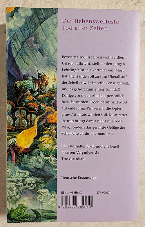 Bevor der Tod in seinen wohlverdienten Urlaub aufbricht, stellt er den jungen Lehrling Mort als Vertreter ein. Mort hat alle Hände voll zu tun: Überall auf der Scheibenwelt ist seine Sense gefragt, und es gehört zum guten Ton, dass Könige vor deren Ableben persönlich besucht werden. Doch dann trifft Mort auf eine junge Prinzessin, die Opfer eines Attentats werden soll. Mort rettet sie und bringt damit nicht nur Tods Plan, sondern das gesamte Gefüge der Scheibenwelt durcheinander.