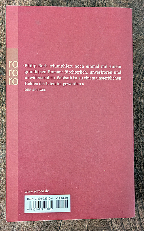 Ein komischer Roman von epischen Proportionen, und der gargantueske Held der Geschichte heißt Mickey Sabbath. einst war er ein um skandalöse Einfälle nie verlegener Puppenspieler, doch auch mit fünfundsechzig ist Sabbath noch ein durch und durch widerspenstiger, von sexuellen Begierden getriebener Mann. Erst nach dem Tod seiner langjährigen Geliebten - einer erotischen Ketzerin, deren ehebrecherischer Wagemut selbst den seinen übertrifft - beginnt Sabbath eine turbulente Reise in seine Vergangenheit, die ihn an den Rand des Wahnsinns führt.