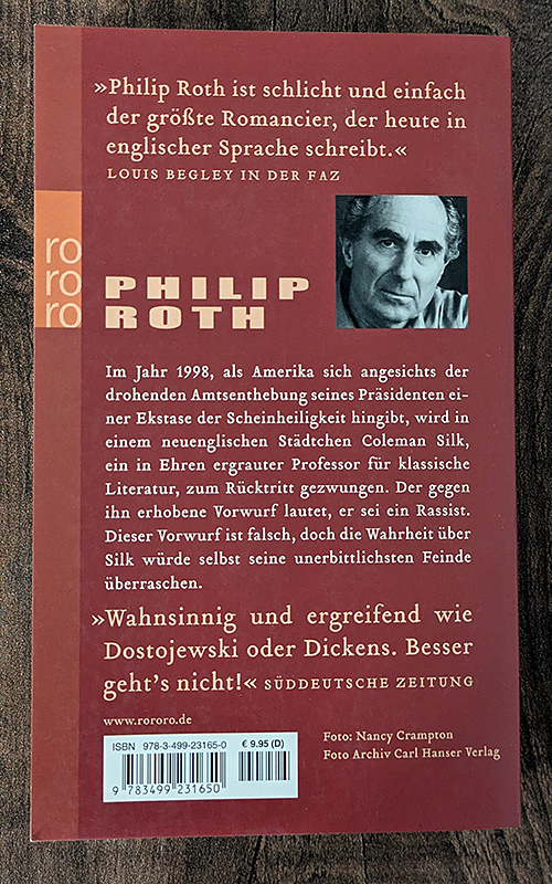 Roman. Die Geschichte eines Collegeprofessors, der durch einen Skandal sein Leben und seine Karriere gefährdet.. Ein tiefgründiger Einblick in die Auswirkungen von Geheimnissen, Lügen und moralischen Fehlern auf das menschliche Leben..