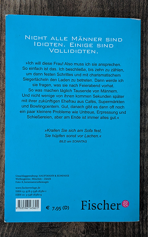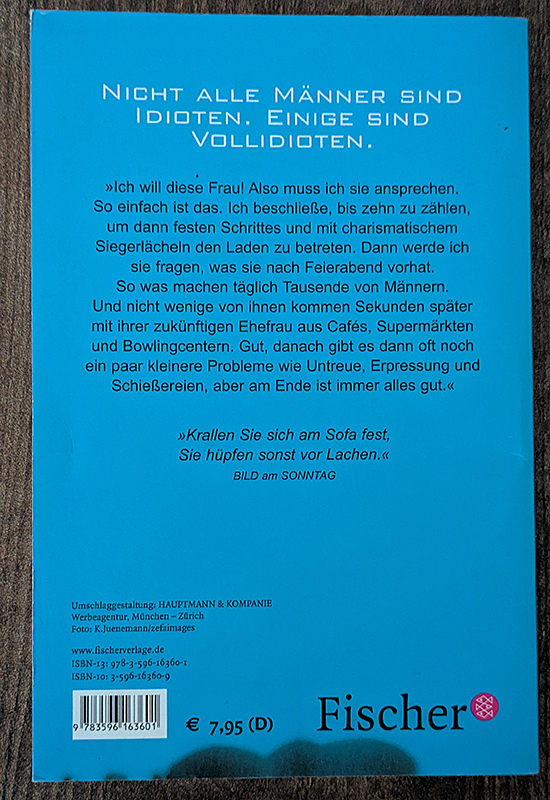 Ich will diese Frau! Also muss ich sie ansprechen. So einfach ist das. Ich beschließe, bis zehn zu zählen und dann festen Schrittes und mit charismatischem Siegerlächeln den Laden zu betreten. Dann werde ich sie fragen, was sie nach Feierabend vorhat. So was machen täglich Tausende von Männern. Und nicht wenige kommen Sekunden später mit ihrer zukünftigen Ehefrau aus Cafés, Supermärkten und Bowlingcentern. Gut, danach gibt es oft noch ein paar kleinere Probleme wie Untreue, Erpressung und Schießereien, aber am Ende ist immer alles gut.