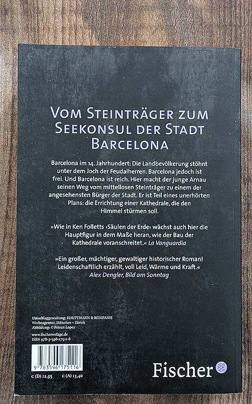 Historischer Roman. Im Barcelona des 14. Jahrhunderts kämpft ein einfacher Mann namens Arnau Estanyol gegen Unterdrückung und Ungerechtigkeit, während er den Bau der Santa Maria del Mar Kathedrale miterlebt..