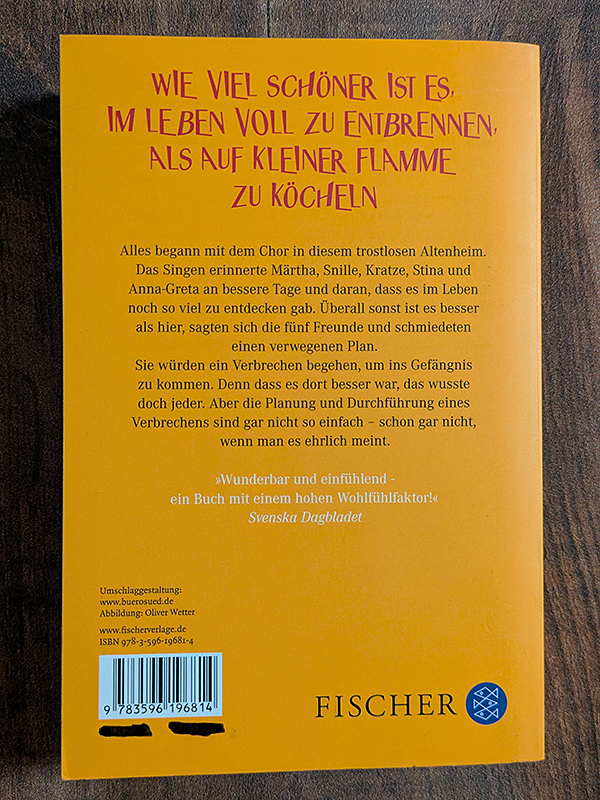 Roman. Eine Gruppe älterer Menschen beschließt, noch einmal richtig durchzustarten und ein aufregendes Leben zu führen.. Es ist nie zu spät, neue Abenteuer zu erleben und das Leben in vollen Zügen zu genießen.. Gruppe älterer Menschen, genaue Figuren unbekannt.