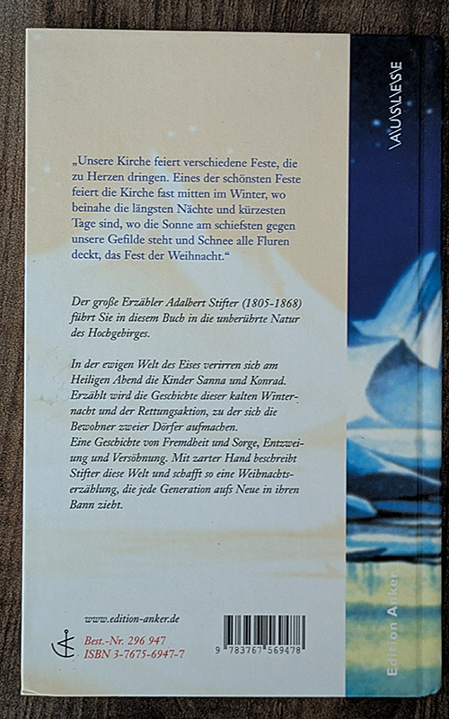 Novelle. Eine klassische Novelle über Liebe, Schuld und Vergebung in einer winterlichen Berglandschaft. Die Geschichte von zwei Kindern, die in einer Schneekatastrophe voneinander getrennt werden, berührt durch ihre zeitlose Thematik..
