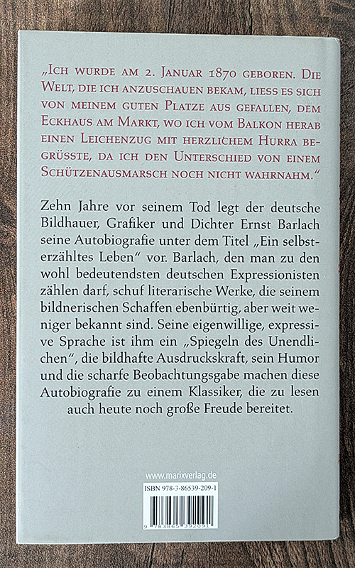 Autobiografie. Die Autobiografie des Bildhauers und Schriftstellers Ernst Barlach, in der er sein Leben, seine künstlerische Entwicklung und seine Gedanken reflektiert..