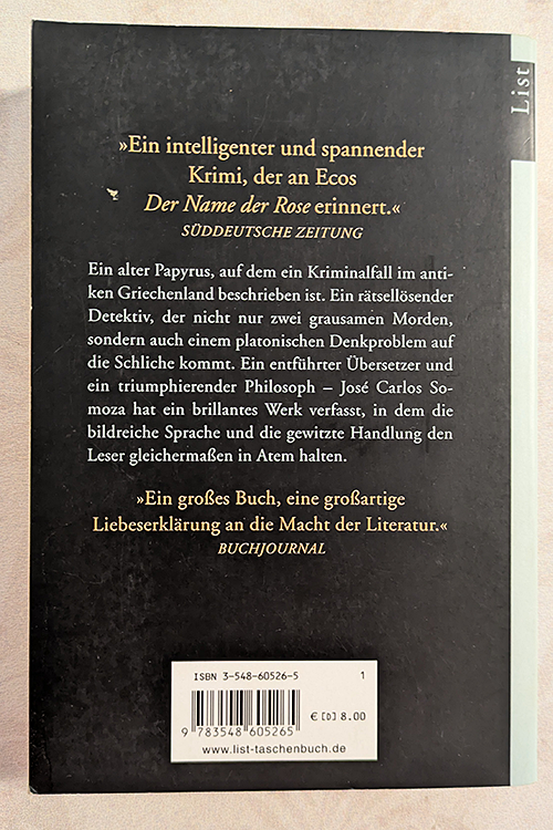 Weiter Zurück SCHLIESSEN “Das” Rätsel des Philosophen José Carlos Somoza Roman Zurück inkl. MwSt. 3.29 € Kaufen