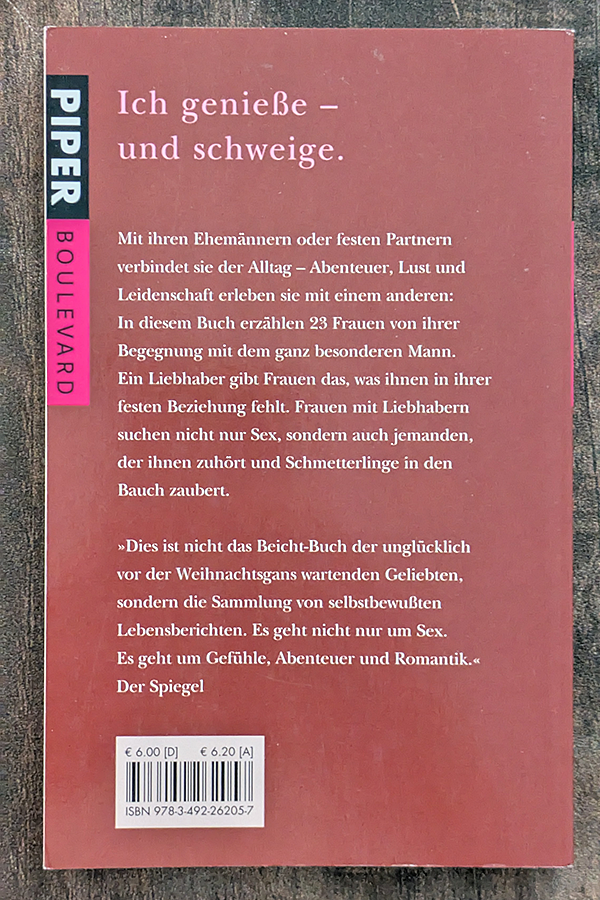 Ein Liebhaber gegen Langeweile? Vielen Frauen in festen Beziehungen fehlt schon lange etwas; Romantik, Abenteuer und das Kribbeln im Bauch. Darum schaffen sie in ihrem Leben Platz für einen Zweitmann - und erleben Zauber und Glück. Martina Rellin erzählt vom fabelhaften Lebensgefühl mit Liebhabern, von der Anwendung sowie von Risiken und durchaus erwünschten Nebenwirkungen. Für Frauen, die einen Liebhaber haben oder haben wollen. Für ihn, wenn er verstehen will, was sie will. Und für Eifersüchtige, die wissen wollen, ob womöglich...